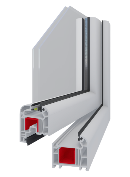 The same type of steel reinforcement is used in the frame, sash, and mullion profiles, ensuring production efficiency and structural integrity.